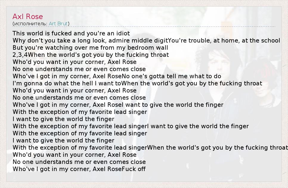 А как ты думаешь, о чем песня "Axl Rose" ?
