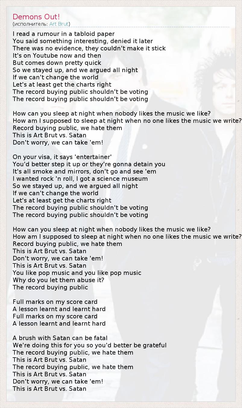 А как ты думаешь, о чем песня "Demons Out!" ?
