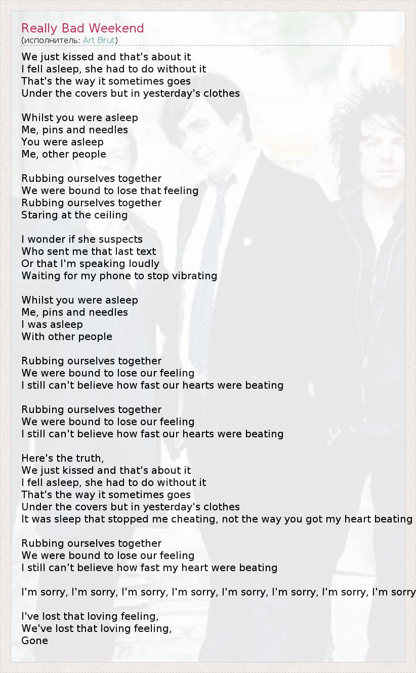 А как ты думаешь, о чем песня "Really Bad Weekend" ?