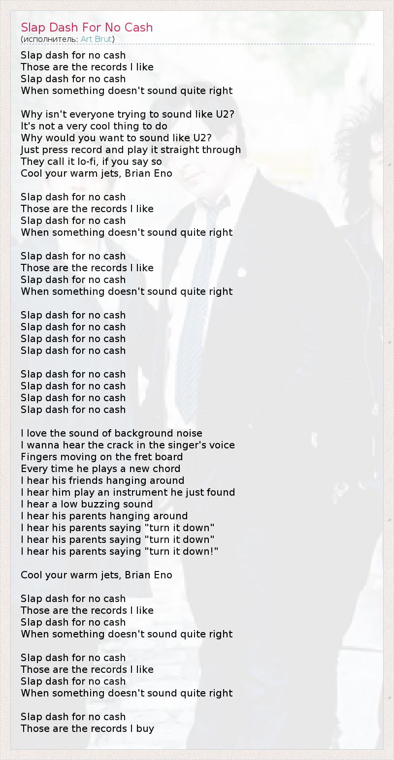 ГлавнаяИсполнителиArt BrutSlap Dash For No Cash