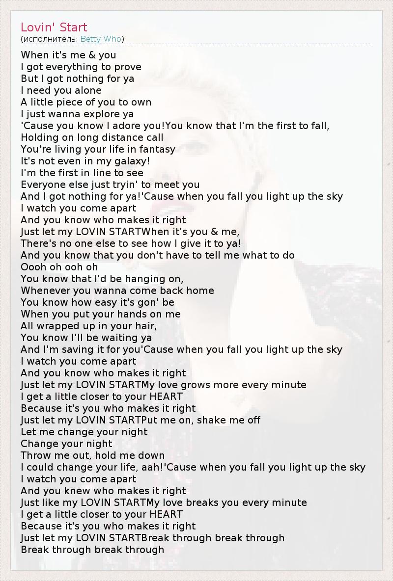 А как ты думаешь, о чем песня "Lovin' Start" ?