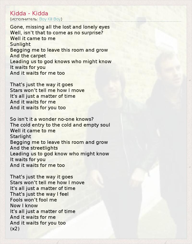 А как ты думаешь, о чем песня "Kidda - Kidda" ?
