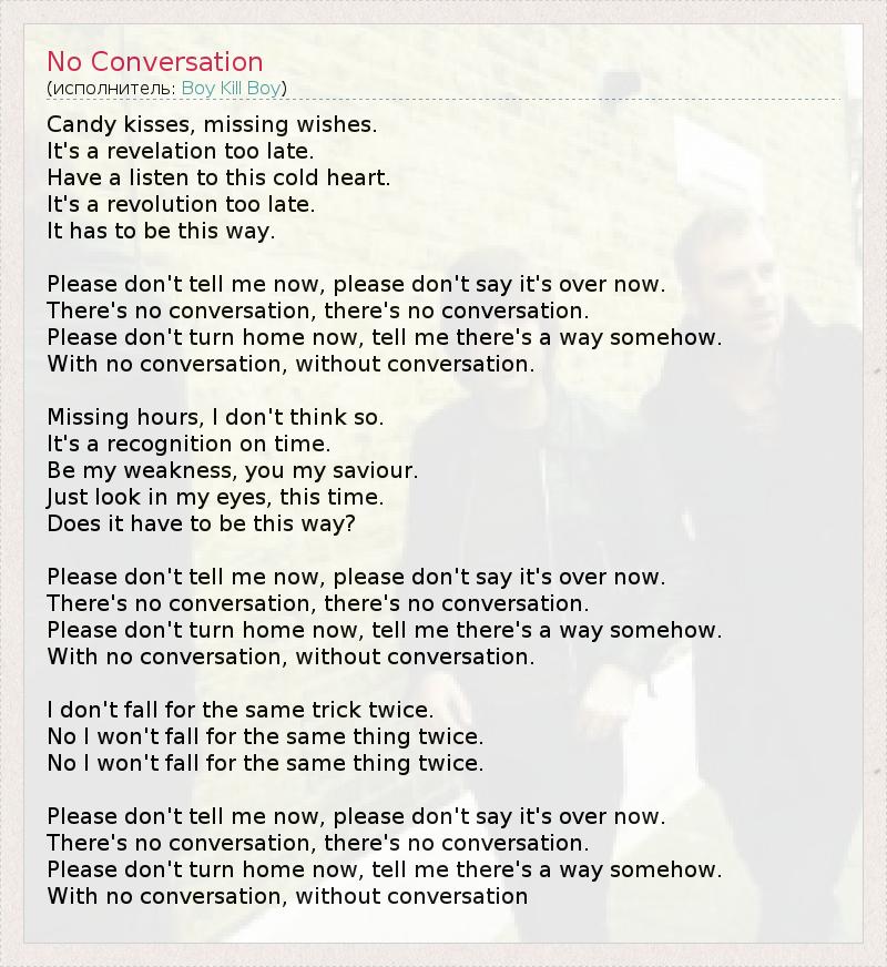 Пожалуйста, не говори мне сейчас, пожалуйста, не говори сейчас, что это конец