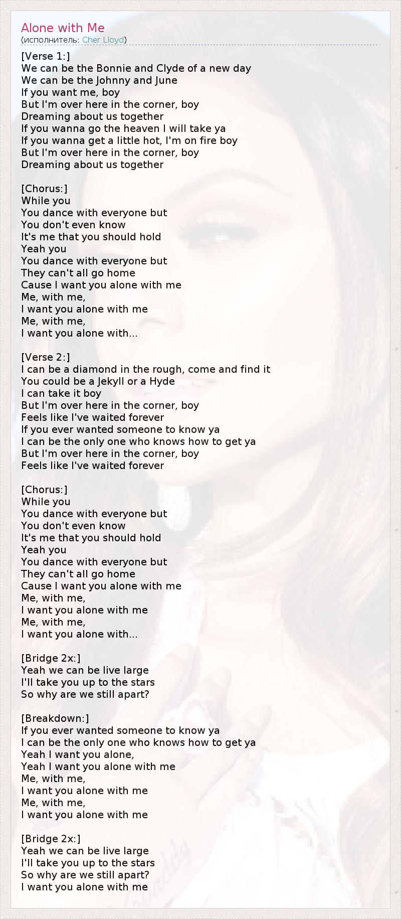 А как ты думаешь, о чем песня "Alone with Me" ?