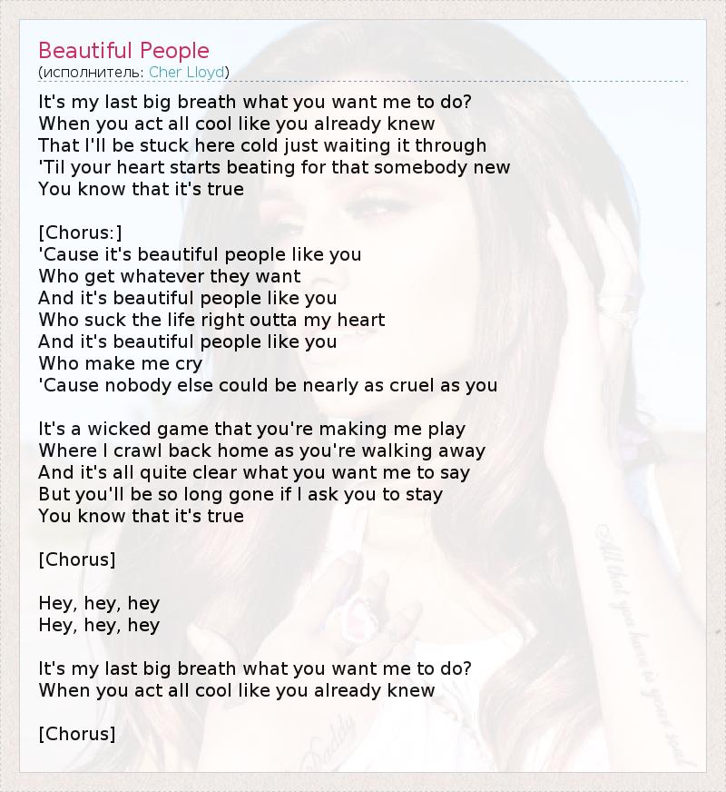 А как ты думаешь, о чем песня "Beautiful People" ?