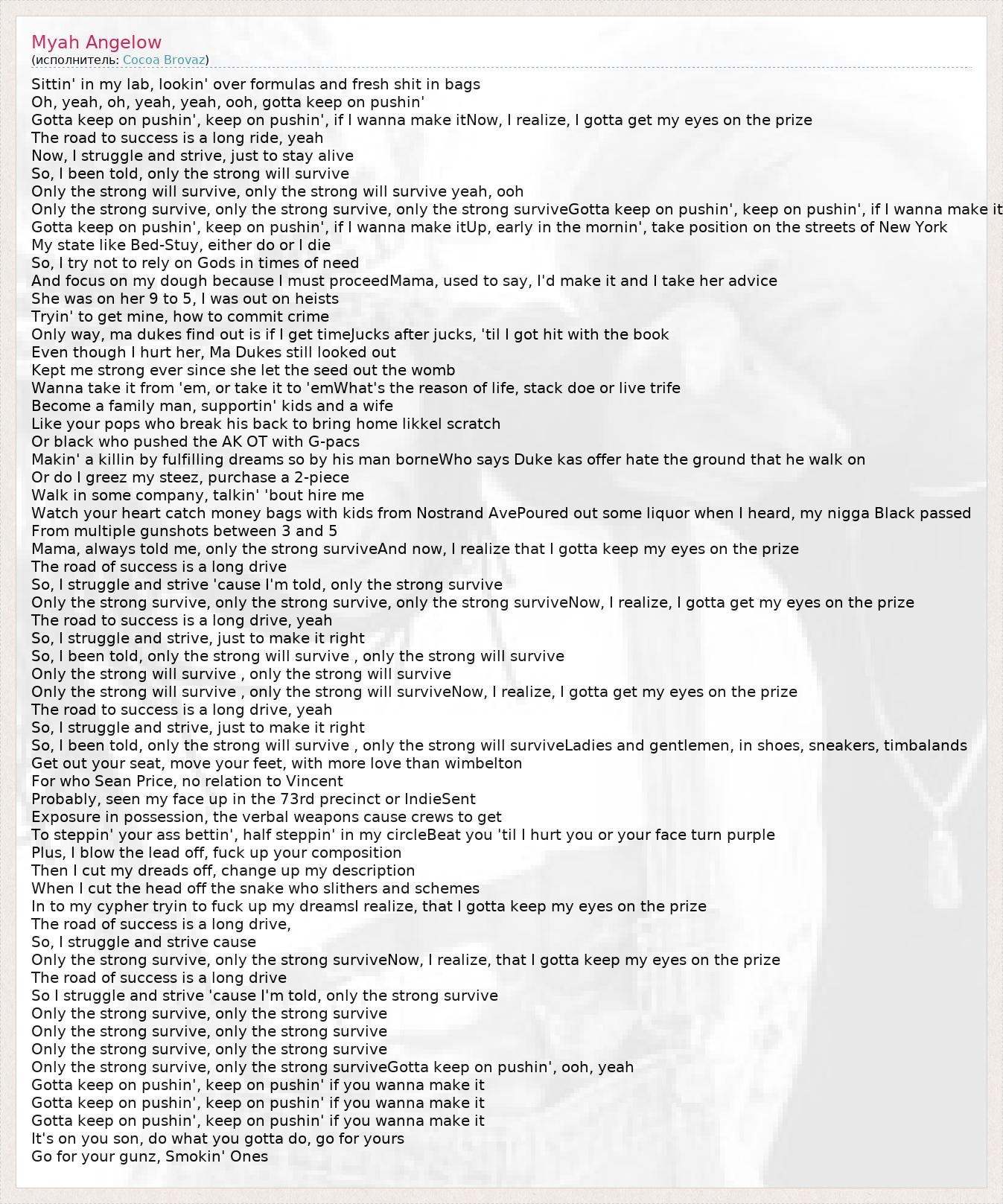 Mama, always told me, only the strong surviveAnd now, I realize that I gotta keep my eyes on the prize