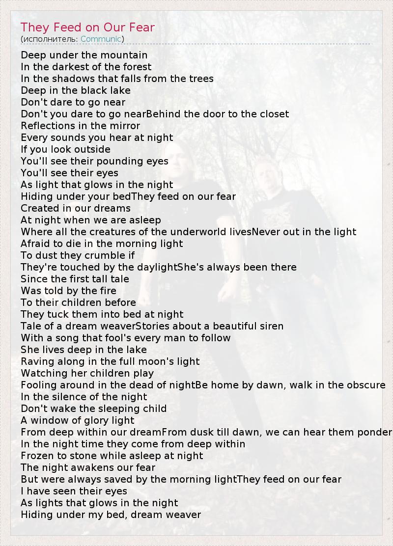 А как ты думаешь, о чем песня "They Feed on Our Fear" ?