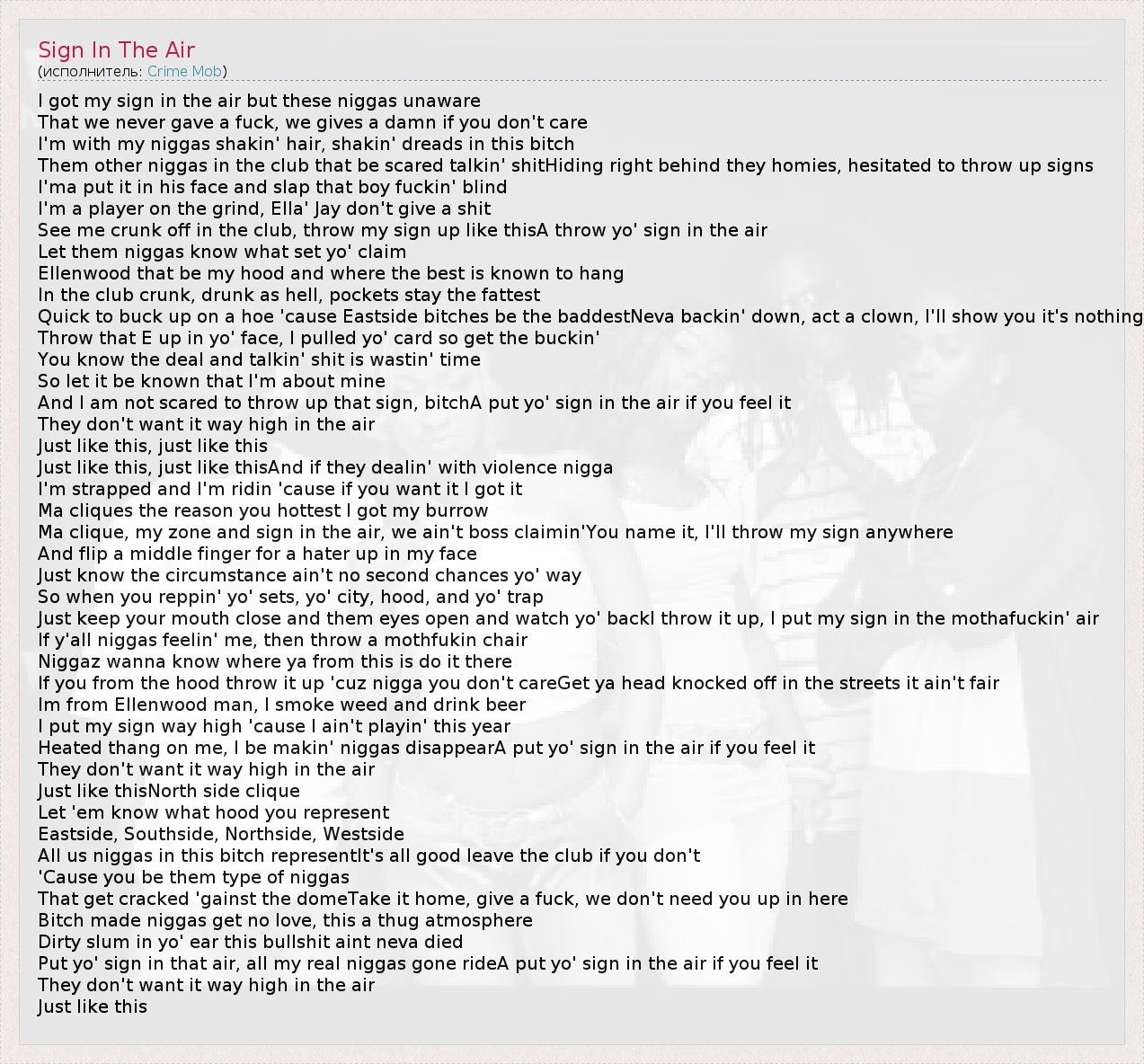 А как ты думаешь, о чем песня "Sign In The Air" ?