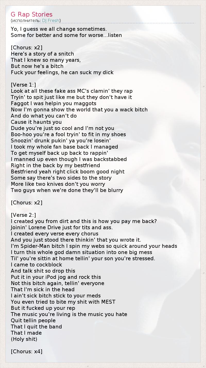 А как ты думаешь, о чем песня "G Rap Stories" ?