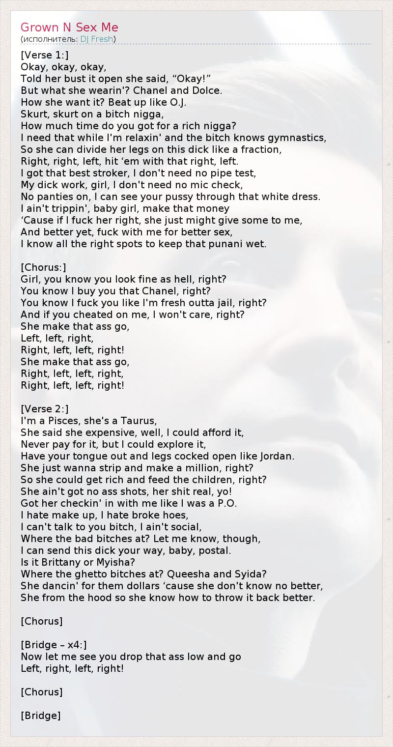 А как ты думаешь, о чем песня "Grown N Sex Me" ?