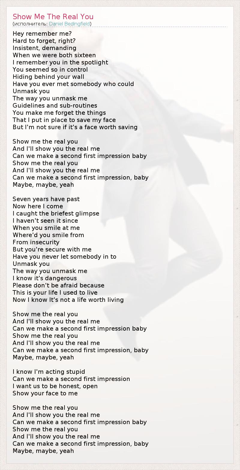 А как ты думаешь, о чем песня "Show Me The Real You" ?