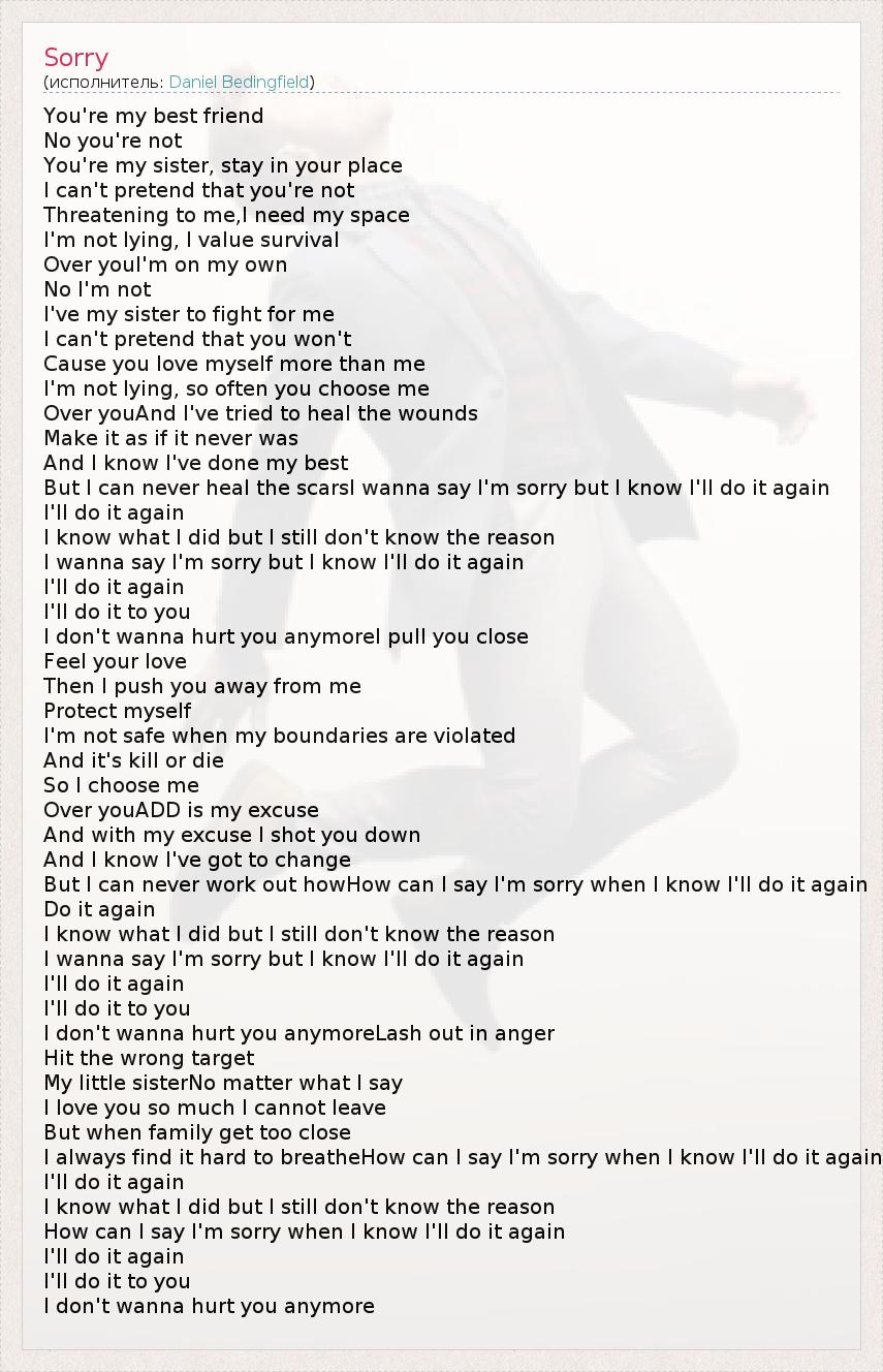 But I can never heal the scarsI wanna say I'm sorry but I know I'll do it again