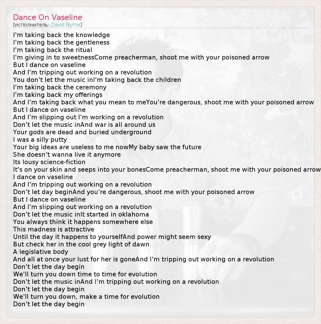 А как ты думаешь, о чем песня "Dance On Vaseline" ?