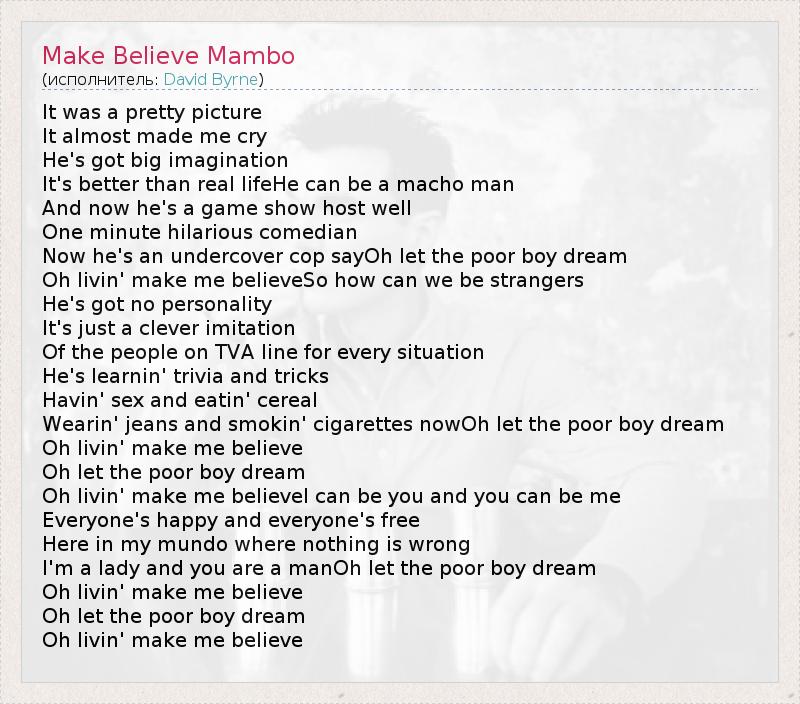 А как ты думаешь, о чем песня "Make Believe Mambo" ?