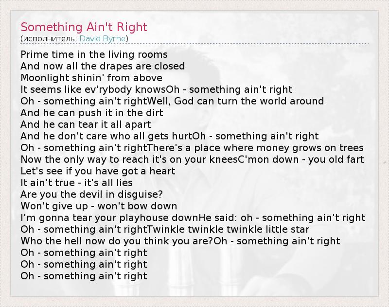 А как ты думаешь, о чем песня "Something Ain't Right" ?