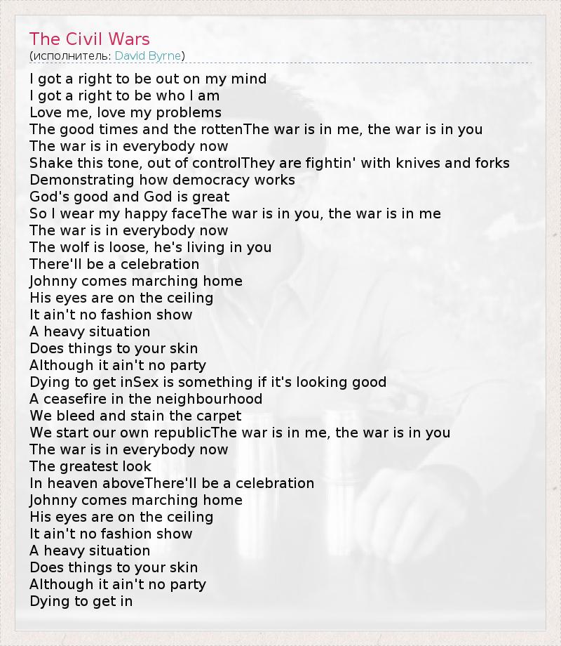 А как ты думаешь, о чем песня "The Civil Wars" ?