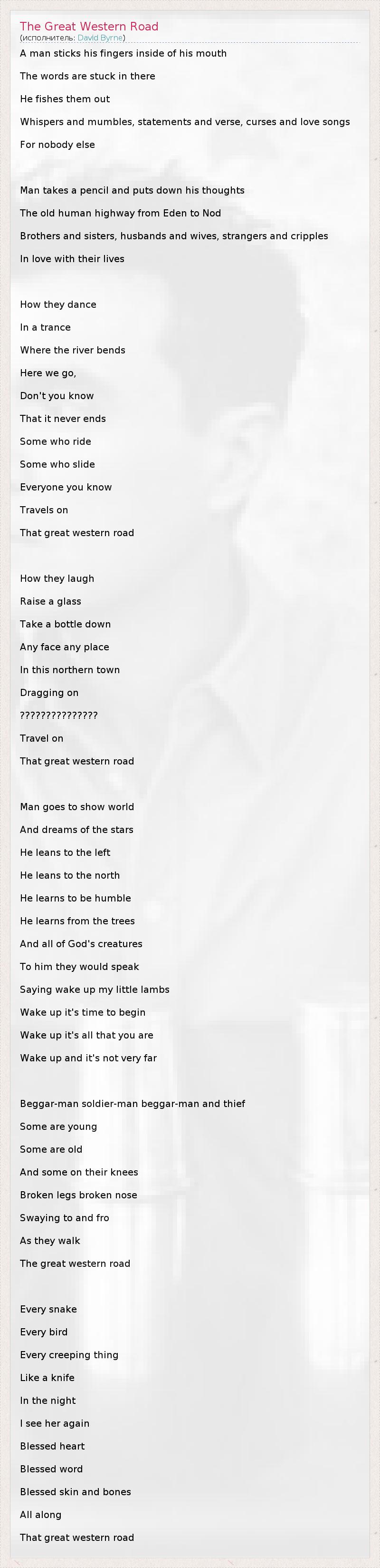 А как ты думаешь, о чем песня "The Great Western Road" ?