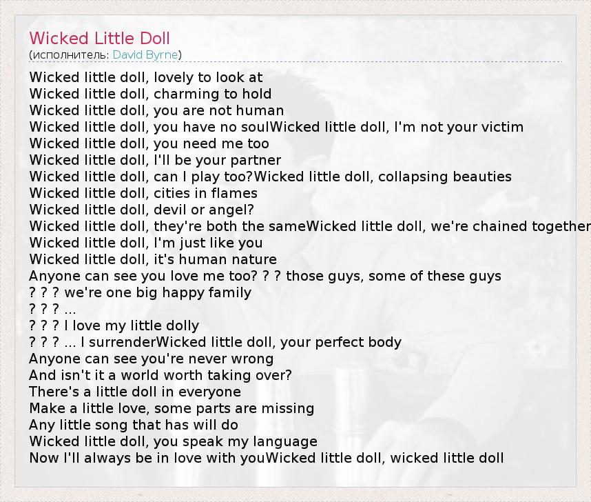 А как ты думаешь, о чем песня "Wicked Little Doll" ?