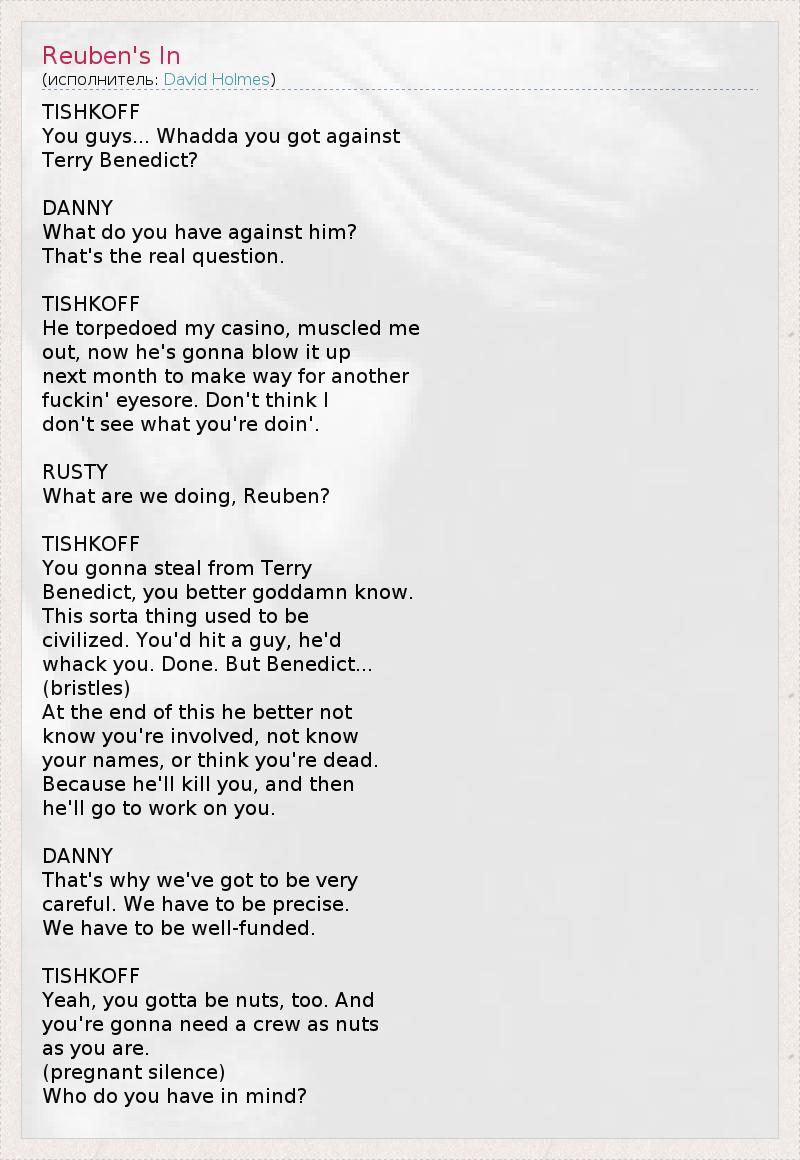 А как ты думаешь, о чем песня "Reuben's In" ?