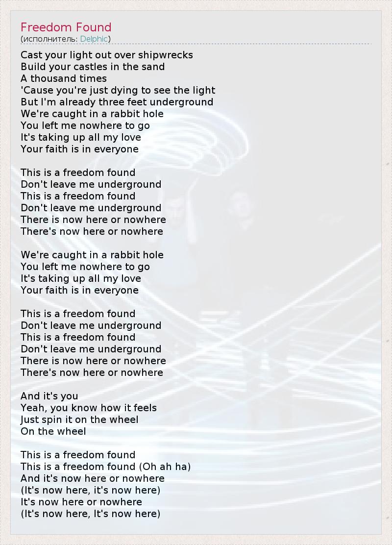 А как ты думаешь, о чем песня "Freedom Found" ?
