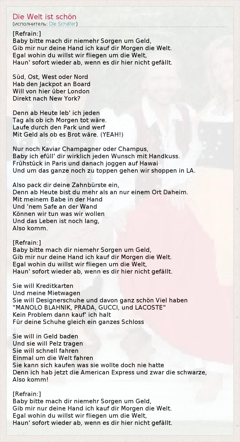 А как ты думаешь, о чем песня "Die Welt ist schön" ?