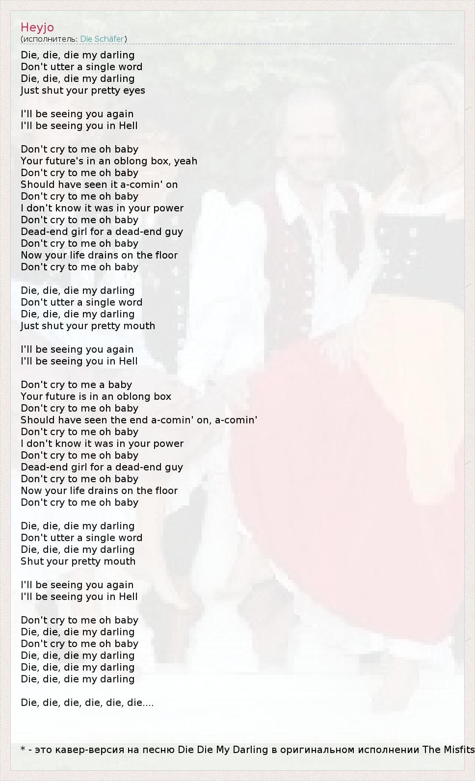 * - это кавер-версия на песню Die Die My Darling в оригинальном исполнении The Misfits