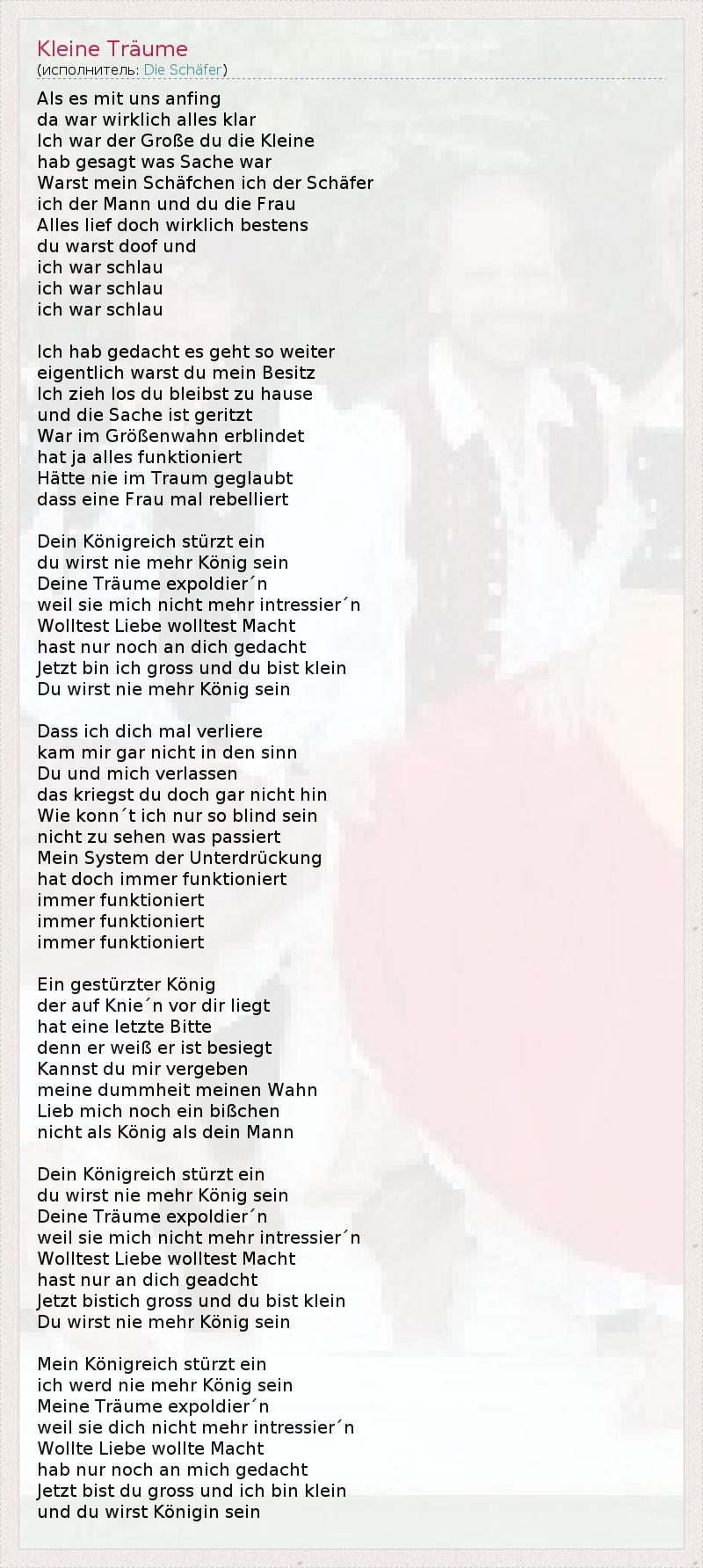 А как ты думаешь, о чем песня "Kleine Träume" ?