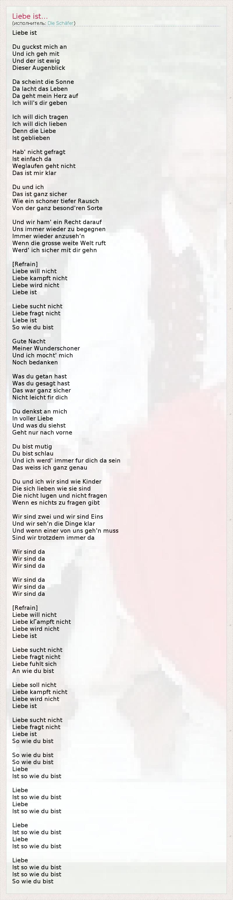 А как ты думаешь, о чем песня "Liebe ist..." ?