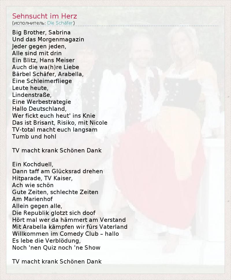 А как ты думаешь, о чем песня "Sehnsucht im Herz" ?