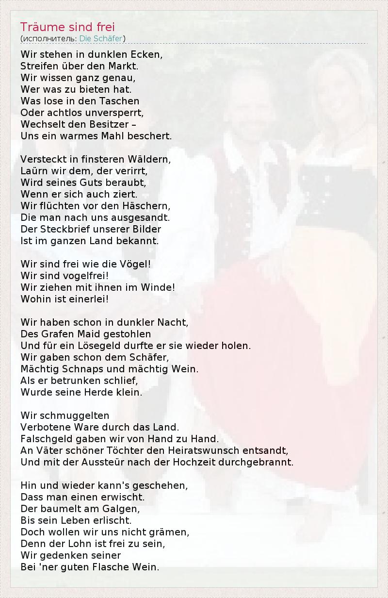 А как ты думаешь, о чем песня "Träume sind frei" ?