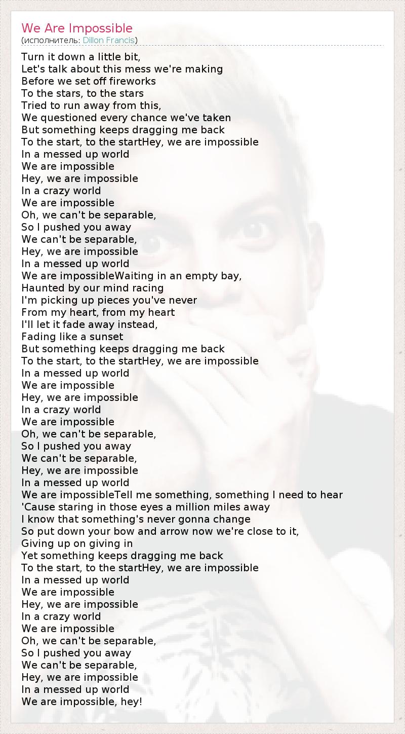 А как ты думаешь, о чем песня "We Are Impossible" ?