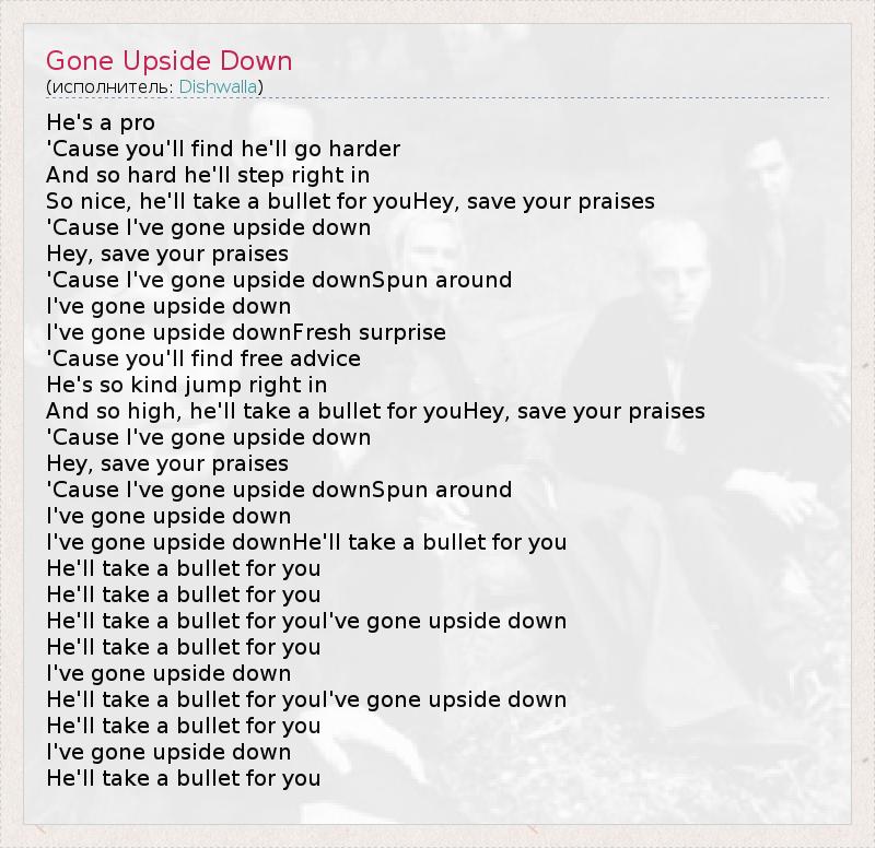 А как ты думаешь, о чем песня "Gone Upside Down" ?