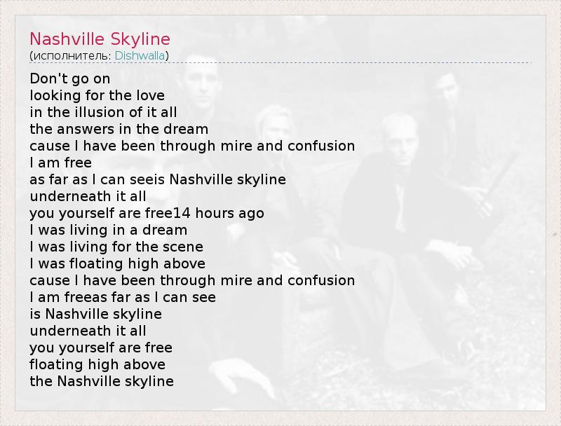А как ты думаешь, о чем песня "Nashville Skyline" ?