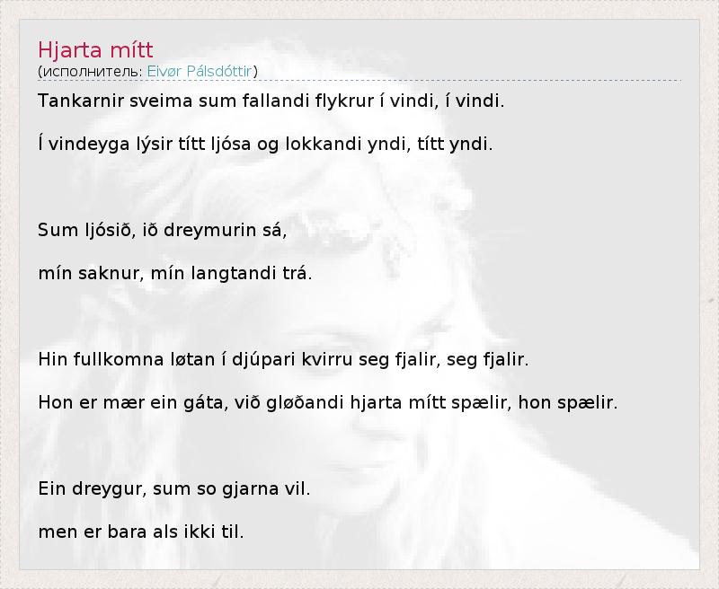 А как ты думаешь, о чем песня "Hjarta mítt" ?