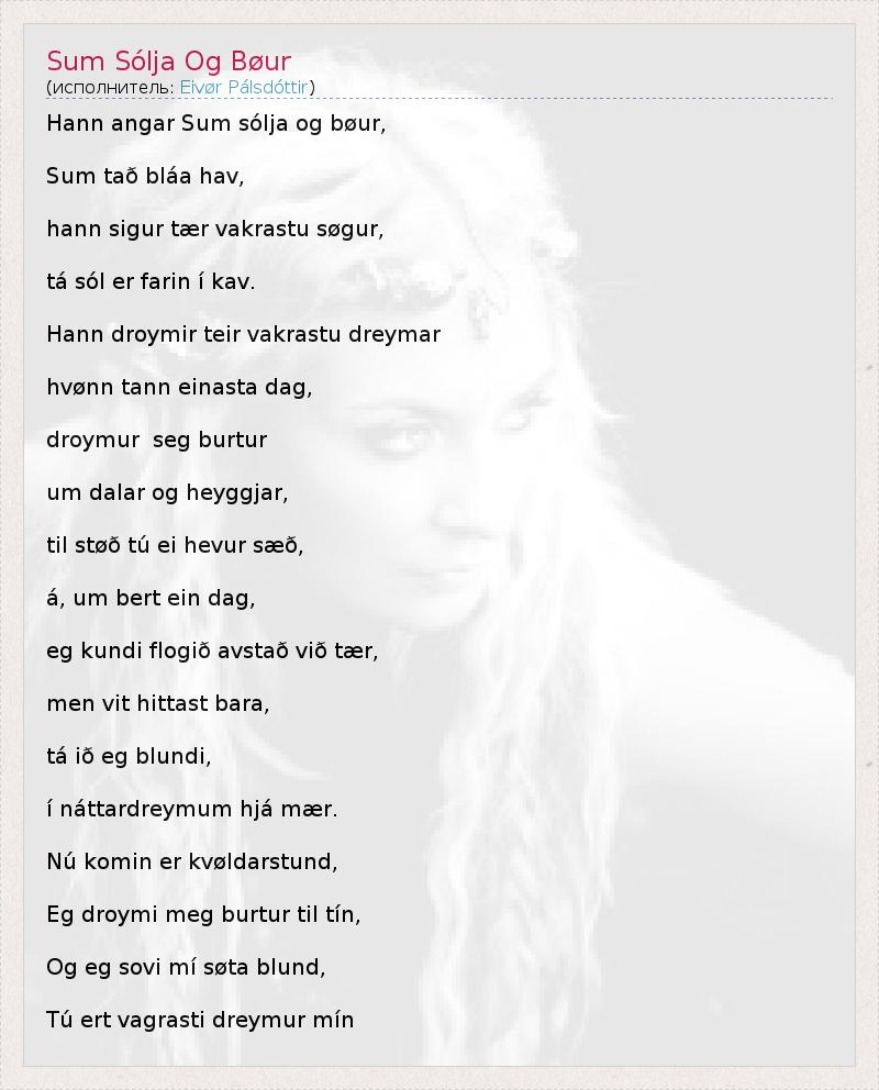 А как ты думаешь, о чем песня "Sum Sólja Og Bøur" ?