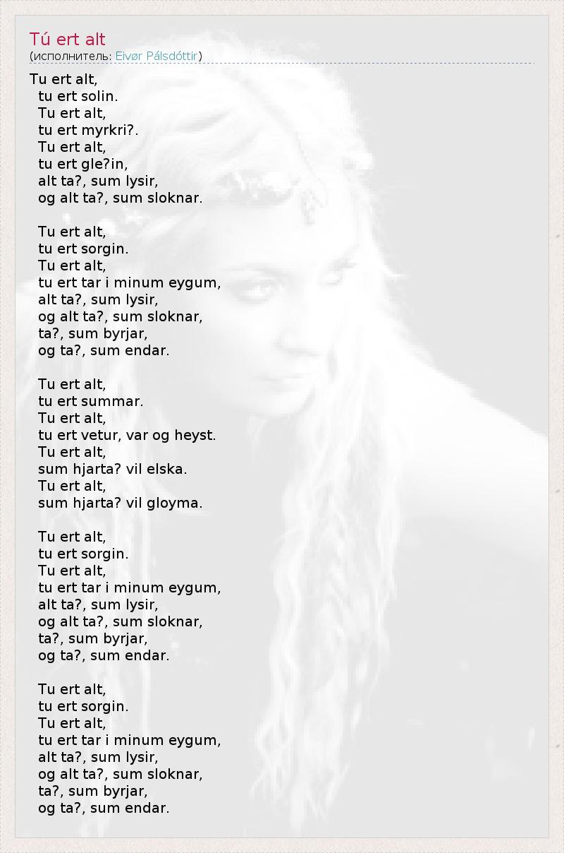 А как ты думаешь, о чем песня "Tú ert alt" ?