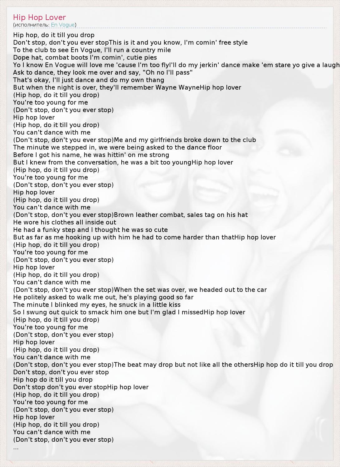 А как ты думаешь, о чем песня "Hip Hop Lover" ?