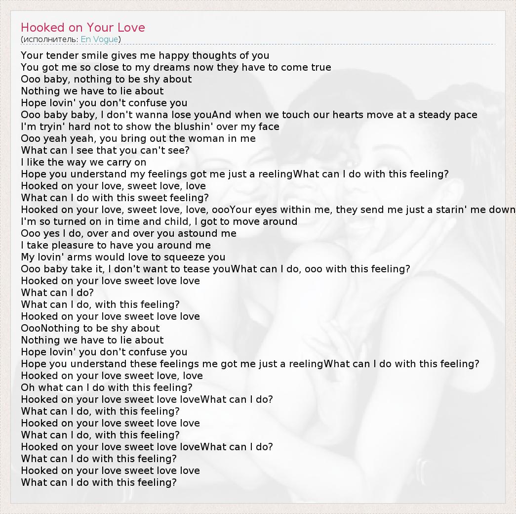 Hooked on your love, sweet love, love