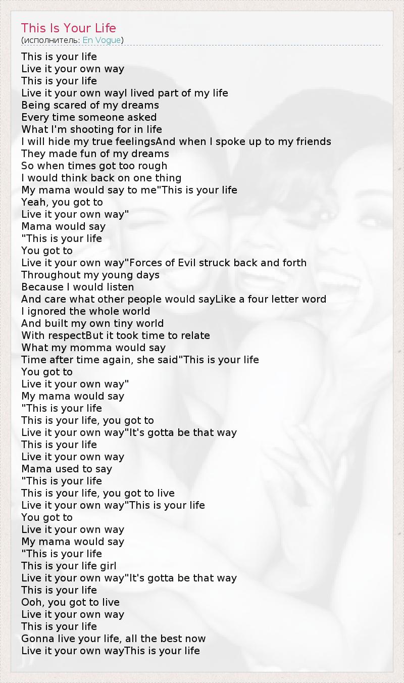 А как ты думаешь, о чем песня "This Is Your Life" ?