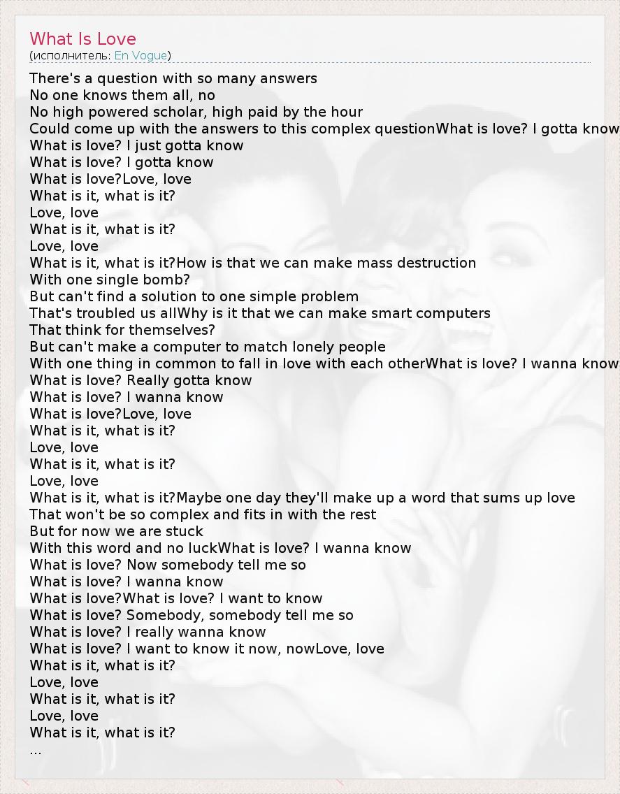 Could come up with the answers to this complex questionWhat is love? I gotta know