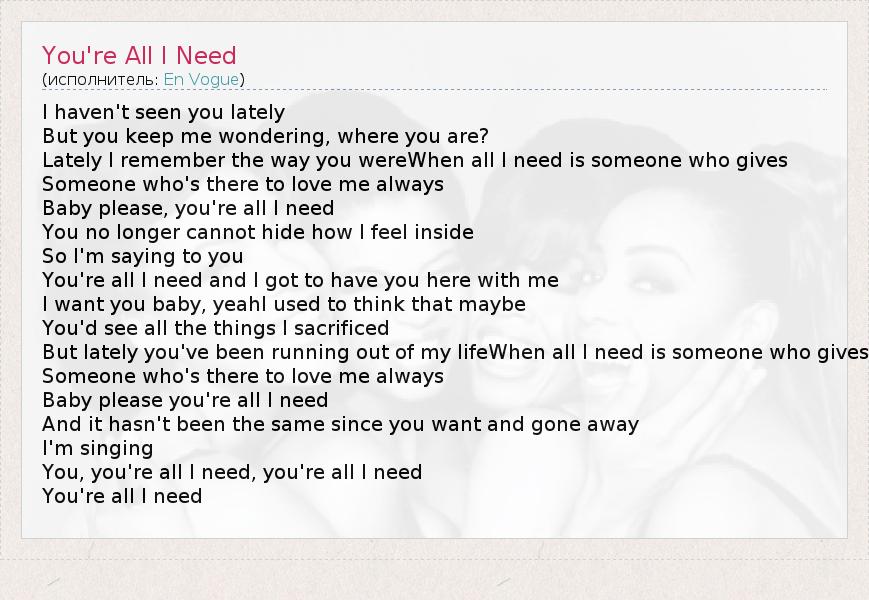 You, you're all I need, you're all I need