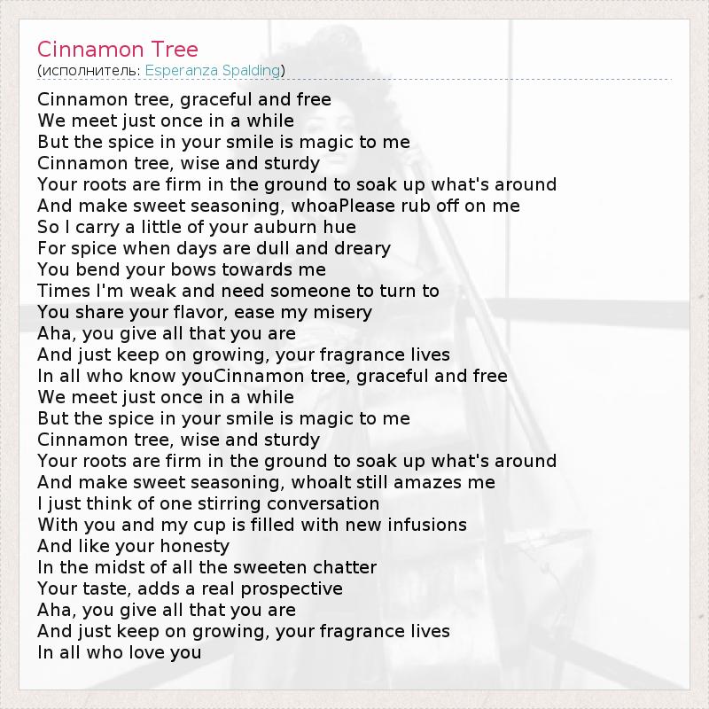 А как ты думаешь, о чем песня "Cinnamon Tree" ?