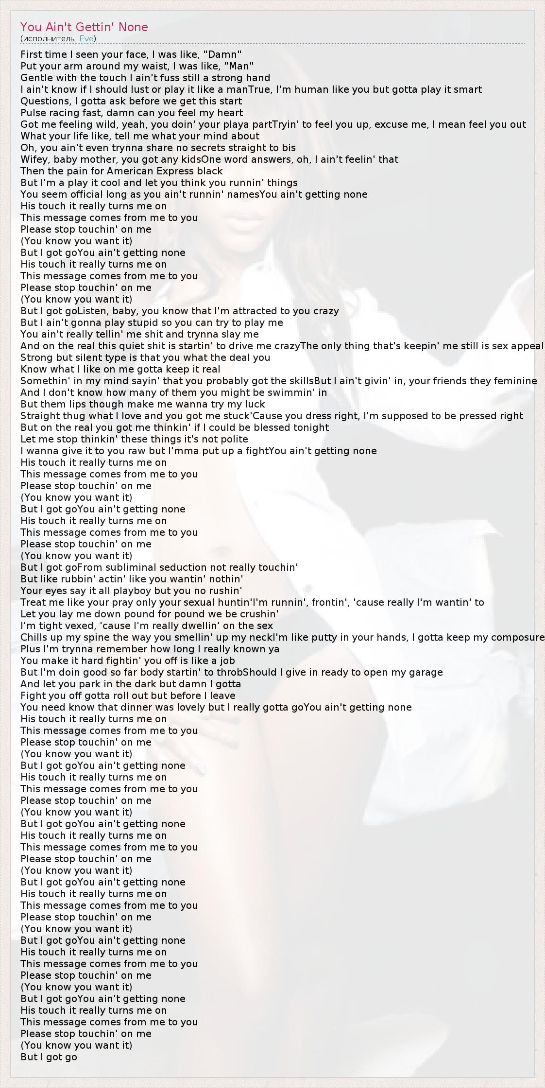 ГлавнаяИсполнителиEveYou Ain't Gettin' None