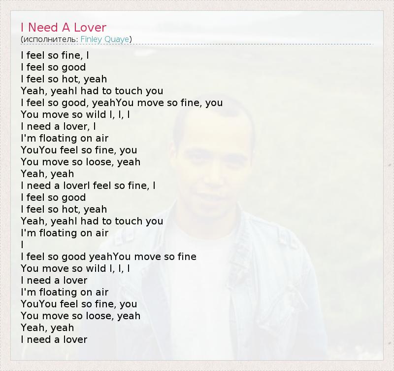 I need a loverI feel so fine, I
