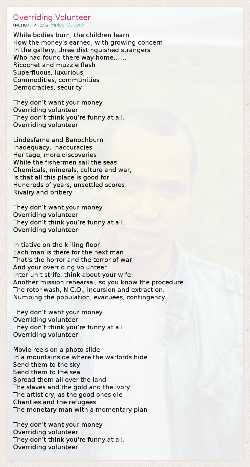 А как ты думаешь, о чем песня "Overriding Volunteer" ?