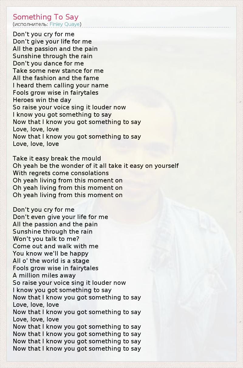 А как ты думаешь, о чем песня "Something To Say" ?