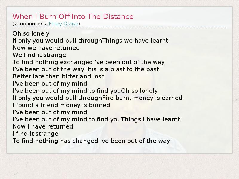 ГлавнаяИсполнителиFinley QuayeWhen I Burn Off Into The Distance