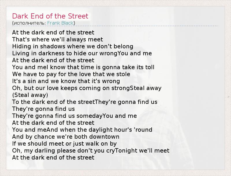 А как ты думаешь, о чем песня "Dark End of the Street" ?