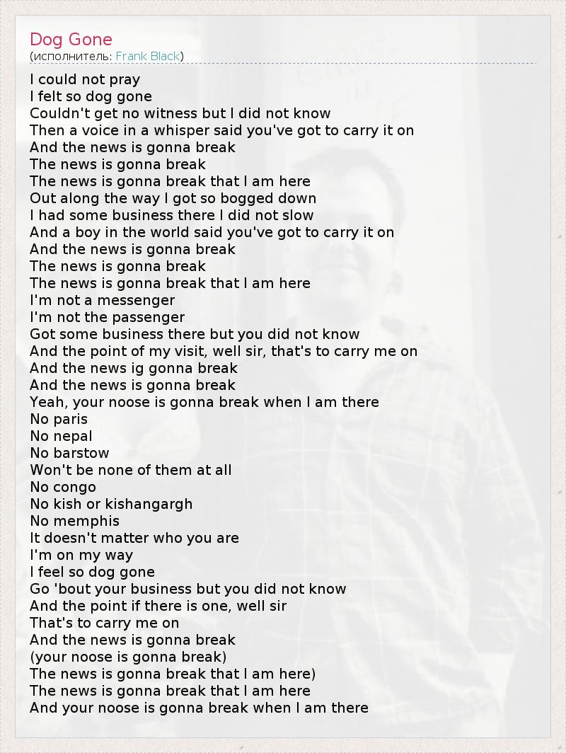 А как ты думаешь, о чем песня "Dog Gone" ?