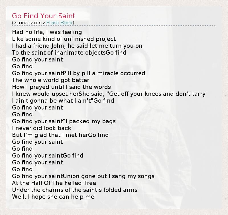 А как ты думаешь, о чем песня "Go Find Your Saint" ?